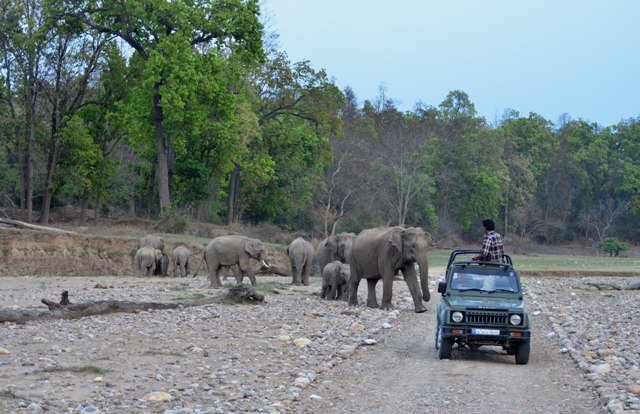 Rajaji National Park not only has the highest number of elephants but also, it is the home to many other animals like Tiger, Leopard, Sambar deer, Barking deer, Wild Boar. Also, the antelopes such as Goral and Nilgai can also be found there. If you are interested in viewing all the animals, March to April would be the perfect time as they then come at river for water.